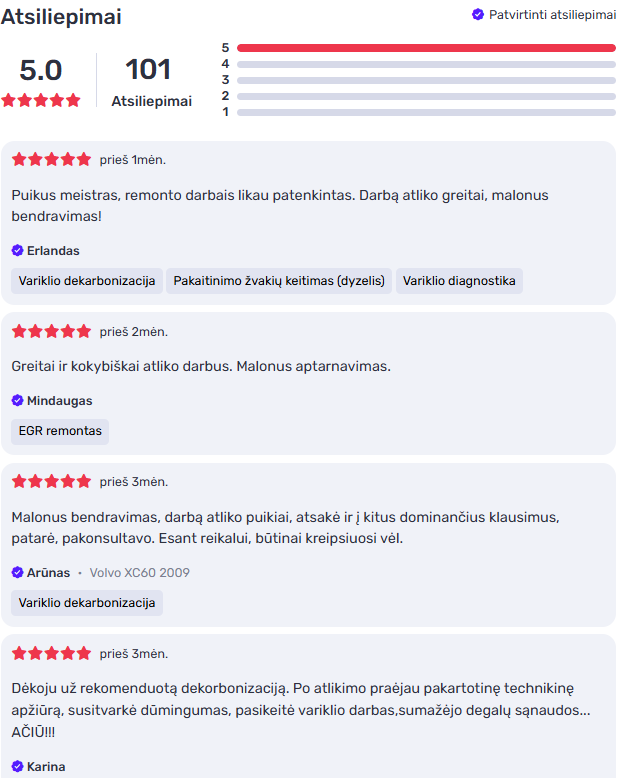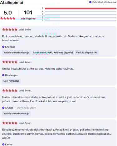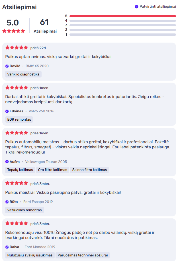 Patikimi automobilio priežiūros ir remonto paslaugų atsiliepimai iš mūsų klientų.